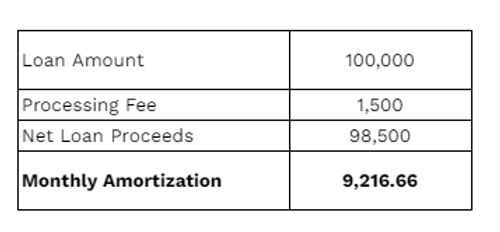 Sample loan computation para sa P100,000 loan:
